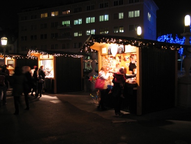 I can?t think of an appropriate translation, but I would say these are small wooden houses. In those houses merchants are selling everything you can imagine and even more. Then I went to see the city hall and I noticed a big Christmas tree in front of it.